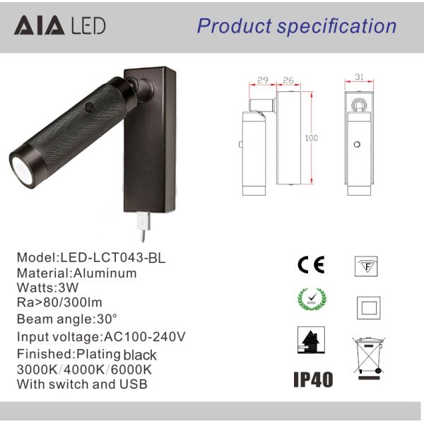 Surface mounted reading wall light/flexible bedside wall light/reading light usb/bed wall light